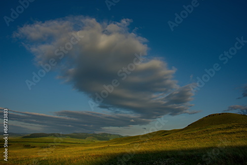 Russia. South Of Western Siberia. Republic Of Khakassia. Picturesque horizons of endless steppes along the highway between the villages of Shira and Uzhur.