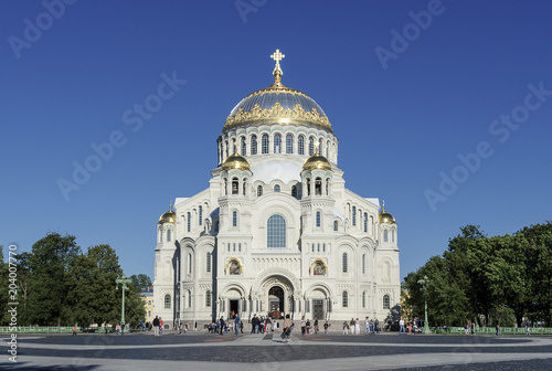 Russian Orthodox monastery church in sunny weather blue sky