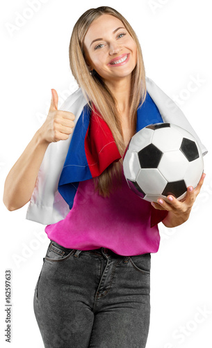 adult, background, ball, beautiful, cheerful, concept, country, cup, europa, european, excitement, face, fan, female, flag, football, girl, happy, holding, isolated, joy, joyful, painted, person, portrait, pretty, sexy, smiling, soccer, sport, studio, supporter, team, white, woman, earth, russian, russia