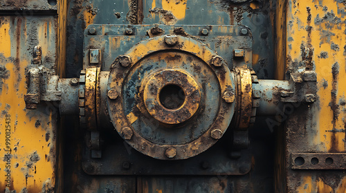 Rusted industrial machinery with visible wear and deep, corroded textures