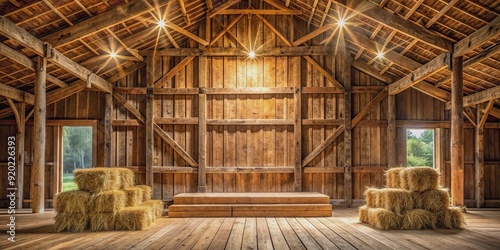 Rustic barn-inspired stage with hay and wooden beams , barn, rustic, stage, hay, wooden beams, vintage, country, farm