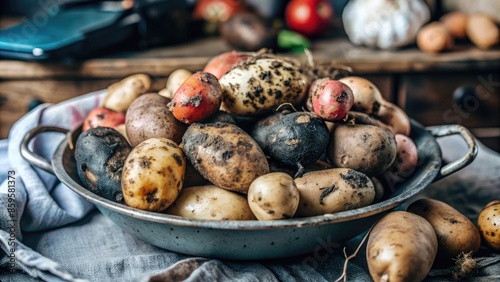 rustic, bowl, filled, assorted, fresh, potato, food, visual, detailed, bright, inviting, natural, culinary, vibrant, scene, organic, homemade, earthy, alimentary, harvest, kitchen, traditional, cosy