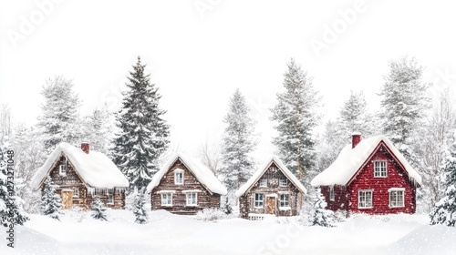Rustic Cottages in Winter Wonderland Scene