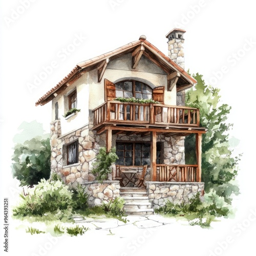 Rustic Duplex Watercolor Painting - Isolated Illustration 1