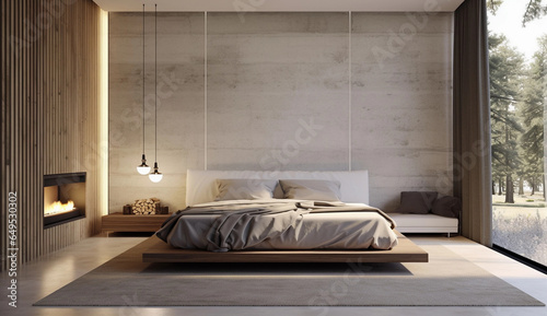 Rustic Elegance Spacious Modern Bedroom with Fireplace and Scenic Views