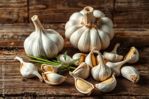 Rustic garlic on wooden table