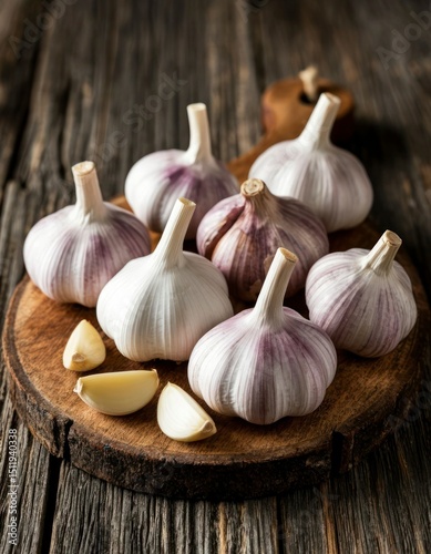 garlic, rustic, clove, bulb, food, kitchen, cooking, herb, aromatic, culinary, natural light, farmhouse, healthy eating, raw food, traditional, seasoning, still life, wood texture, country style, authentic, spicey, topview, hi-res, ingredient, food photography, depth of field, wooden table