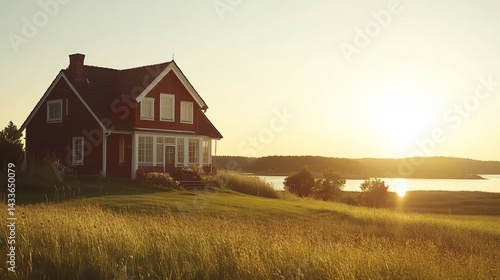 home, house, bungalow, red, sunset, lake, nature, peace, calmness, idylli, scenic, view, rural, countryside, charming, summer, sun, gold, horizon, grass, field, calm, quiet, peaceful, exterior, cabin, property, vacation, relaxation, dream, rustic, architecture, landscape, investment, relax, holiday, luxury, still