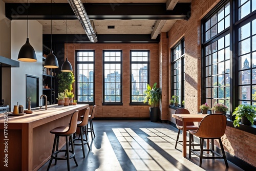 rustic, brick, wood, industrial, interior, table, furniture, architecture