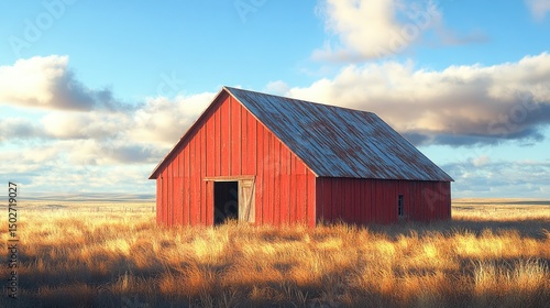 barn, red, rustic, field, gold, grass, rural, country, farm, landscape, sunset, sunrise, sky, cloud, open, door, wooden, structure, agriculture, nature, horizon, exterior, autumn, fall, peaceful, tranquil, stillness, vintage, isolated, simple, old, classic, sunny, warm, light, wheat, goldenrod, empty, quiet, wide, huge, farmland, pasture, hay, storage, ranch, colours, image
