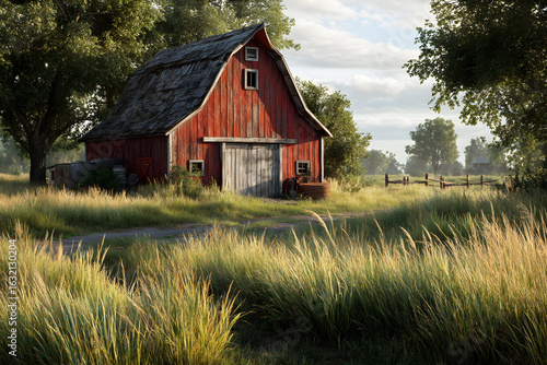 Rustic Red Barn in Summer Field