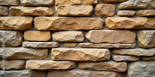 Rustic stacked stone wall, uneven texture, earthy tones, retro, design