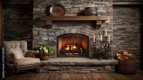 rustic, stone, fireplace, illustration, hearth, mantel, cosy, elegant, traditional, modern, natural, warmth, home, design, interior, architecture, living, room, focal, point, ambience, comfort, relaxation, heat, construction, renovation