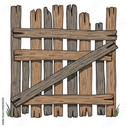Rustic Wooden Gate with Vertical Planks and Crossbar for Country Fence