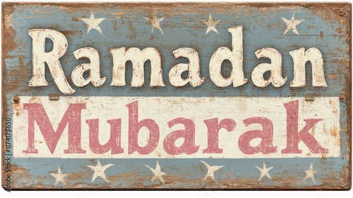 Rustic wooden Ramadan Mubarak sign. Ideal for home decor during the holy month. Festive and welcoming.