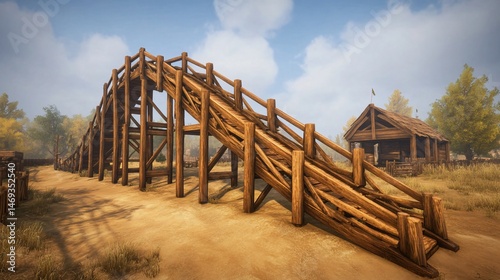 ramp, rustic, rural, mediaeval, architecture, historical, construction, wood, timber, building, path, passage, access, asset, digital, design, model, three-dimensional, render, texture, environment, scene, background, landscape, game, virtual, reality, simulation, old world, ancient, construction site, building material, support, framework, infrastructure
