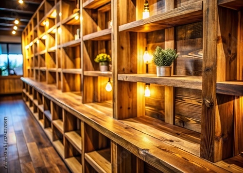 Rustic Wooden Shelf Unit with Multiple Shelves - High-Resolution Stock Photo