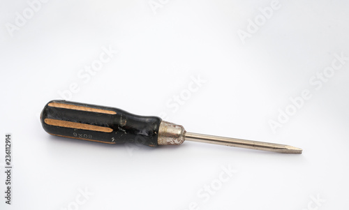 rusty screwdriver on white background