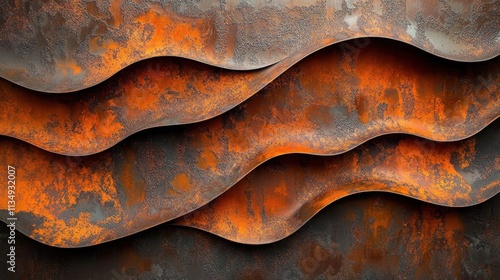 rust, metal, wave, texture, art, installation, orange, grey, contrast, sculpture, design, curve, weathered, industrial, surface, pattern, visual, aesthetic, line, nature, urban, abstraction, creative, contemporary, craftsmanship, material, shape, gallery, environment