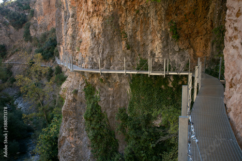 Ruta de las pasarelas, Alquézar. Beautiful route across the river crossing metal walkways and nature trails through the mountain.