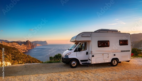 RV camper van parked at a breathtaking scenic viewpoint, capturing the spirit of freedom, exploration, and the ultimate road trip adventure.