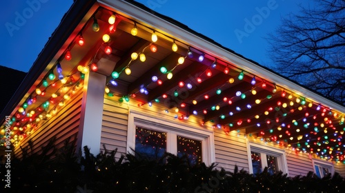 christmas, light, border, illustration, festive, colourful, border, holiday, decoration, roofline, house, close, up, glow, night, sky, zigzag, string, warm, dark, background, bright, cheerful, twinkling, display, winter, season, traditional