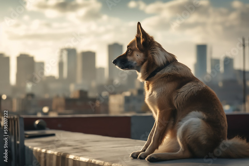 Sad Dog looking outdoor. Generative AI