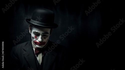 make-up, nose, costume, sad, caucasian, expression, character, clown, hat, angry, entertainment, humor, face, wig, joy, fun, emotion, cry, holiday, dressed, mental, stress, man, horror, terrible, art, sorry, depressed, emotional, dress, space