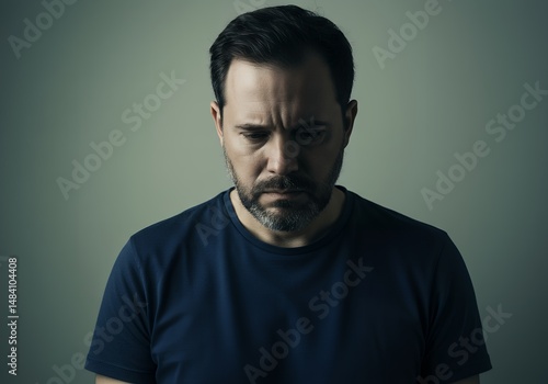 Sad man looking down in moody lighting