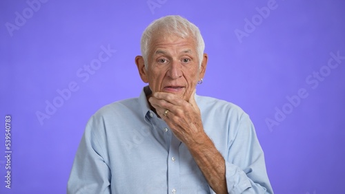 upset, worried, disturbed, stressed, portrait, old, senior, elderly, man, person, face, purple, background, solid, photogenic, 70s, middle-aged, mature, grey, coiffure, elegant, business, middle, aged, people, retired, pensioner, health, guy, male, model, groan, languish, trouble, stress, grieved, sorrowful, late, sad, delay, lose, problem, deadline, cephalalgia, depression, sleepy, fatigued, frowning