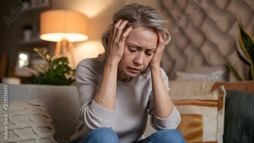 sad, woman, depressed, worried, anxious, stressed, exhausted, overwhelmed, sleepy, lonely, unhappy, melancholy, desperate, hopeless, troubled, weary, grief, pain, suffering, grieved, despondent, miserable, gloomy, dejected, discouraged, agitated, upset, sofa, sitting, alone, home, feeling, emotional, adult, portrait, photo, indoor, lifestyle