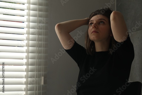 adult, alone, anxiety, background, bad, blind, caucasian, closed, copy, depression, despair, difficulty, disappointed, distress, emotion, exhausted, expression, face, female, frustrated, health, home, indoor, lifestyle, lonely, missing, negative, pain, person, portrait, problem, room, sad, sorrowful, serious, solitude, space, stress, suffering, text, thinking, thoughtful, thought, sleepy, trouble, unhappy, upset, woman, worried