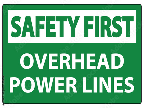 Safety First Sign for Overhead Power Lines Warning and Caution Display