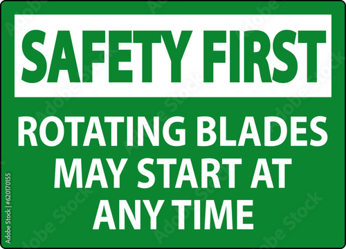 Safety First Sign Rotating Blades May Start At Any Time