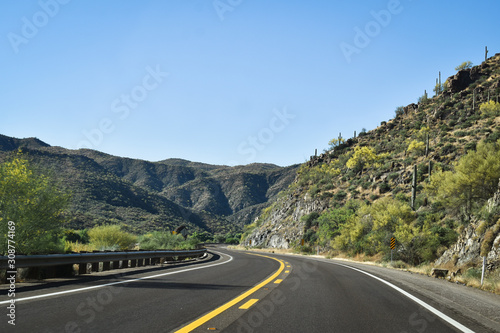 road, highway, mountain, landscape, travel, sky, asphalt, nature, mountain, desert, line, way, summer, trip, journey, blue, scenic, us, country, street, nobody, route, curve, outdoors, transportation, arizona, tucson