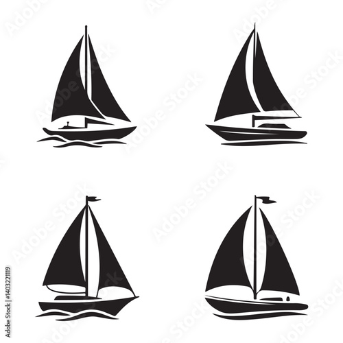 Sailboat icon, logo Vector Black silhouettes on white background