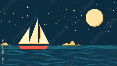 Sailboat on a tranquil sea under a starry night sky