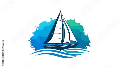 ship, sailboat, sailing, yacht, water, wave, ocean, blue, white, design, graphic, illustration, abstract, splash, artistic, vector, sea, marin, travel, voyage, adventure, horizon, nautical, calm, style, modern, simple, elegant, logotype, concept