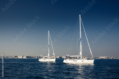 Sailing ship yachts with white sails