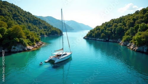 Sailing yacht anchored in secluded cove serene atmosphere, cove, peaceful, nature
