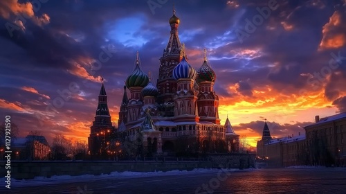 Saint Basil's Cathedral, sunset, winter, Moscow.