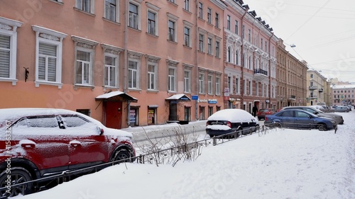 Saint Petersburg, Russia, there is a lot of snow on the streets in winter (February 2021)