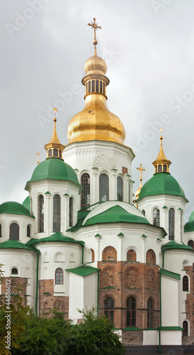 cathedral, kiev, ukraine, architecture, historic, landmark, history, city, religion, christianity, orthodox, travel, tour tourism, historical, europa, church, renovated, dome, rain, gold, green, cross, cloud