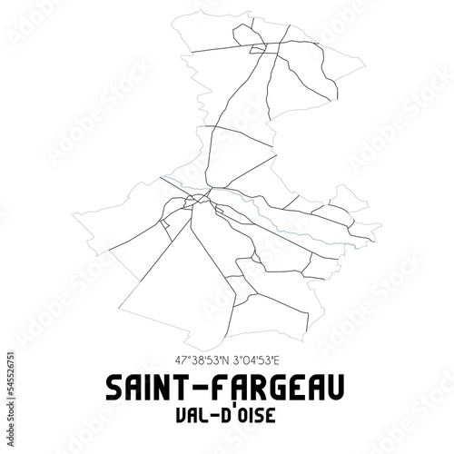 SAINT-FARGEAU Val-d'Oise. Minimalistic street map with black and white lines.