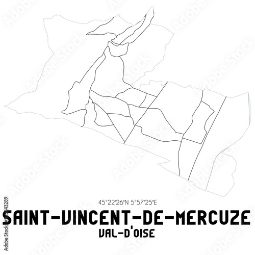 SAINT-VINCENT-DE-MERCUZE Val-d'Oise. Minimalistic street map with black and white lines.