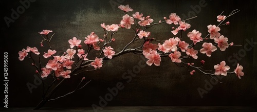Sakura Blossom Branch Arrangement on Dark Studio Backdrop for Elegant Decorative Use