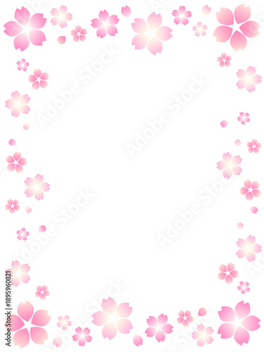春色グラデーションの桜の水彩フレーム背景 縦  sakura_design