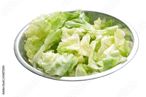 salad, lettuce, green, white background, vegetable, clipping path, plate, metal, bowl