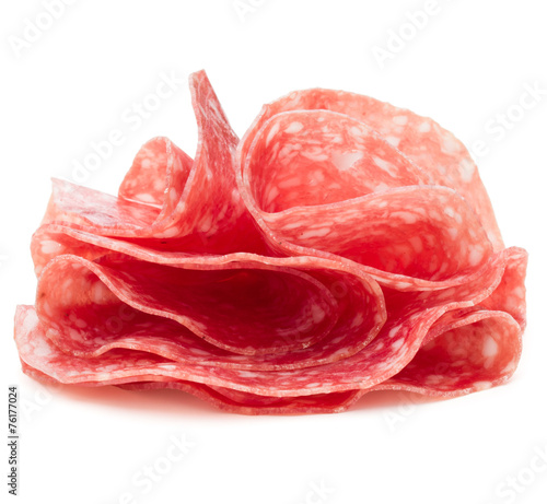 Salami sausage slices isolated on white background cutout