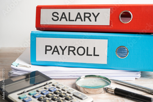 Salary Payroll. Binder data finance report business with graph analysis in office.
